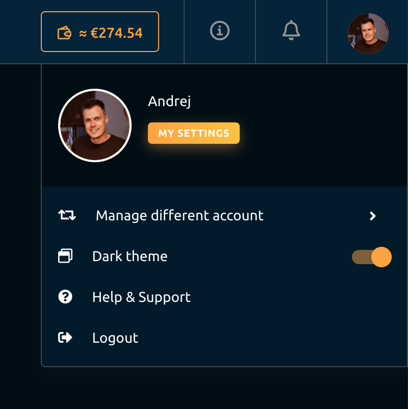 We are happy to announce Dark mode! To enable dark mode, click your profile image in the upper right corner of the screen and toggle dark theme slider.