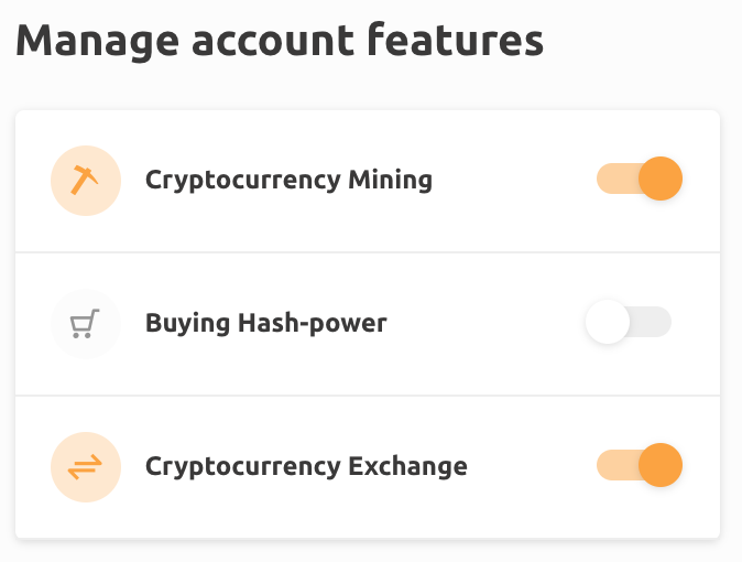 You can now quickly enable and disable different NiceHash features (mining, buying hash-power, exchange) directly on your dashboard and your dashboard will change accordingly.