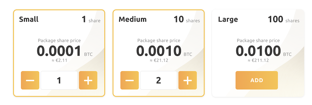 - Then the package will open up, and you can select the shares you want to add. You have three price points, Small, Medium, and Large. Read more below about pricing.