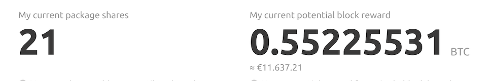 For example, if you have 1 share out of a package that started mining with 10 shares total, you would be entitled to 10% of the reward amount.