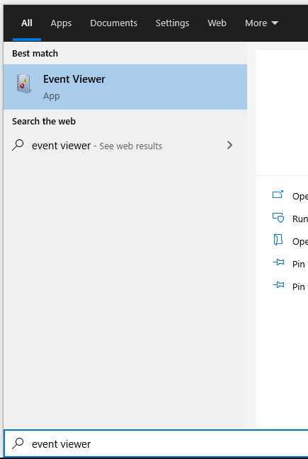 1. Open Event Viewer. Type Event Viewer in Windows Search.