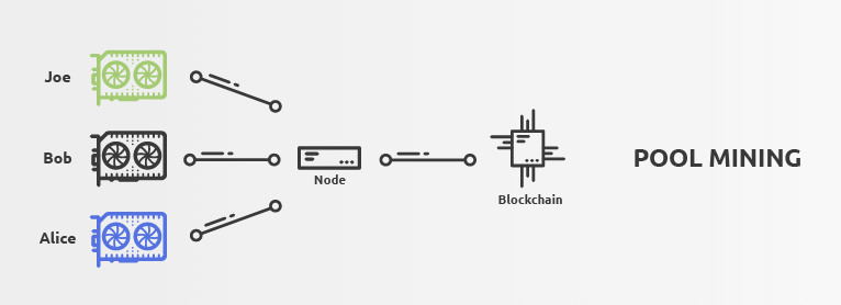 Du point de vue de la blockchain, un pool de minage est un mineur unique et de grande taille. Pour interagir avec le réseau, les pools de minage doivent faire fonctionner un nœud Bitcoin.