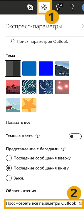 - Нажмите на кнопку параметров на outlook.live.com.