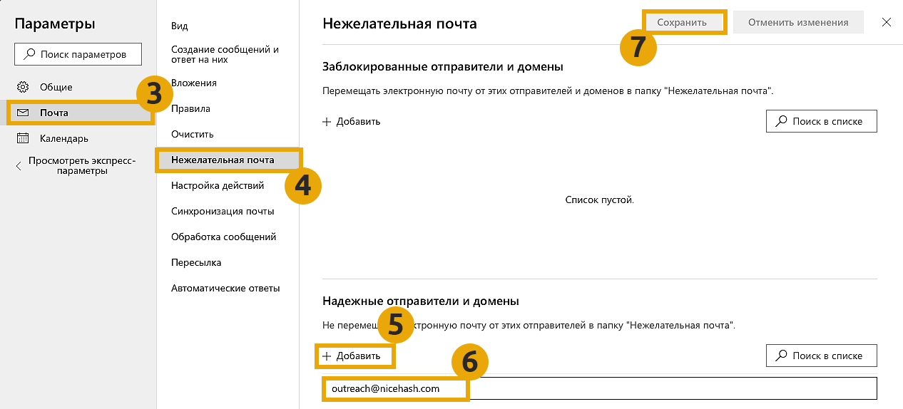 Для предотвращения блокирования важных сообщений как спама со стороны Hotmail или Microsoft Outlook, пожалуйста, выполните следующие шаги: