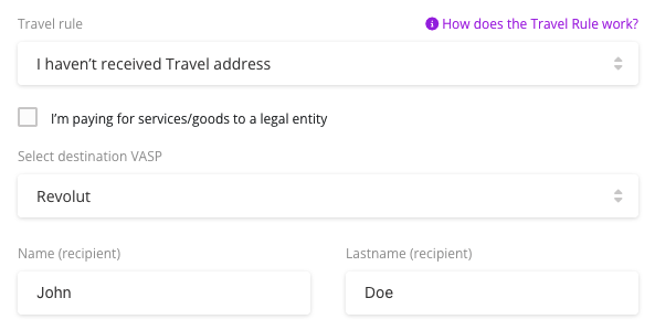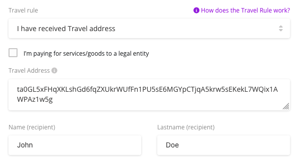Tenga en cuenta que no todos los proveedores de servicios en el mercado admiten la solución de Dirección de Viaje. Siga leyendo para aprender cómo retirar y depositar fondos sin una Dirección de Viaje.