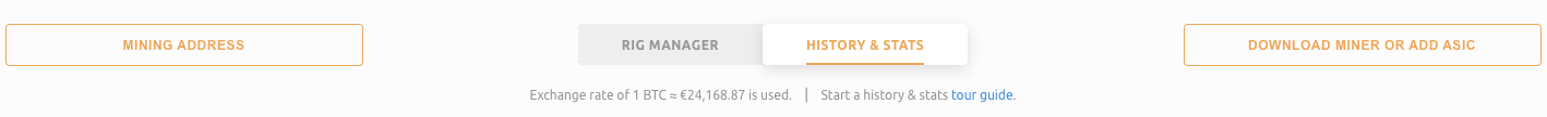 访问历史与统计数据(History & Stats)页面,您可以在矿机管理器中跟踪挖矿、算力、款项以及其他相关的统计数据。